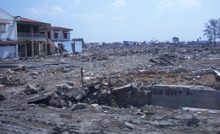 A field of rubble where an urban area of Banda Aceh used to be. “It was a very sobering experience to see it first-hand. It was overwhelming to live in the midst of it, even for such a brief time as we were there.......It was difficult, tiring, all-consuming work...and the 100 degree F daily temperatures were draining, but my time helping in Indonesia was some of the best days of my life. I am honored to have been in service.” |