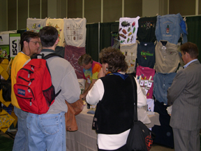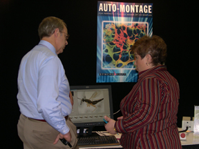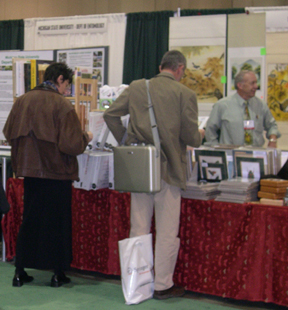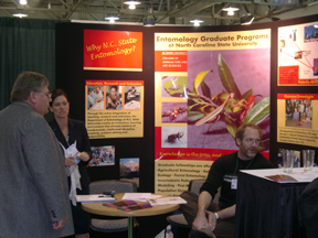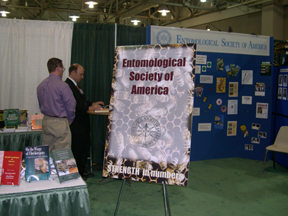 The ESA exhibit show was sold out this year and the focus of much activity. | Members could renew or update their records at the ESA booth. | The Entomological Foundation booth was the home base of its annual silent auction, which featured "Rusty," a huge dragonfly print. |
