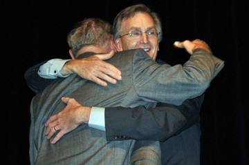 2009 President Marlin Rice gets a hug from outgoing Governing Board member Marvin Harris.